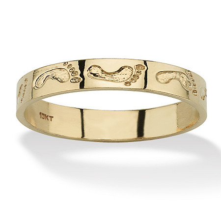 Whimsical design adds fun to your jewelry collection. 10k gold band etched with footprints going nowhere in particular. Sizes 7-10.
