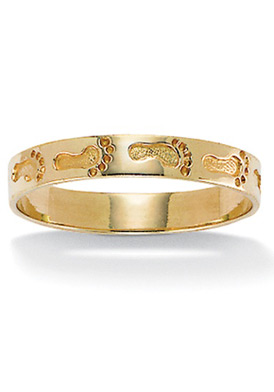 Whimsical design adds fun to your jewelry collection. 10k gold band etched with footprints going nowhere in particular.