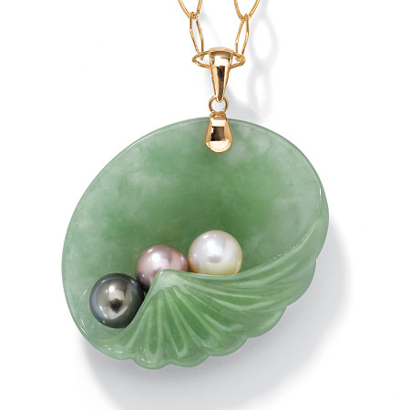 | PalmBeach Jewelry 44402 Jade and Pearl Shell Pendant in 14k Gold |