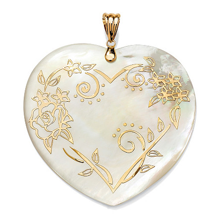 | PalmBeach Jewelry 48951 14k Gold Heart-Shaped Mother-Of-Pearl Floral Motif Pendant |