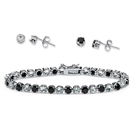 | Youll have a tough decision to make. Wear the genuine midnight sapphire and white topaz necklace with the midnight sapphire studs or the white topaz studs? Youll look great either way! 11.82 carats T.W. Includes 7 tennis bracelet sapphire stud earring Price: 129.99 ![]() |