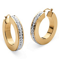 | PalmBeach Jewelry 55079 14K Gold Diamond Fascination Flat & Nano Diamond Resin Filled Hoop Earrings |