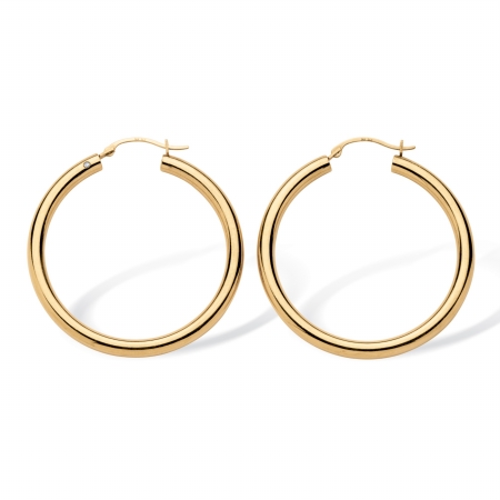 One of the ten must-have types of jewelry items women should have in their wardrobe hoops are classic and go with everything. And these aren't your ordinary pieces. Crafted with 14k yellow gold and nano diamond resin in a special electro forming process they have the strength of diamonds but are ultra-lightweight and comfortable. 1.5 in. diameters. Metal Information- Finish Type - Bright